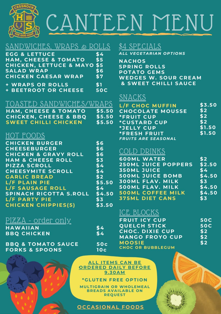 Our school canteen offers healthy, affordable food options for students. Learn about our canteen opening hours, our menu and how to order lunch.
